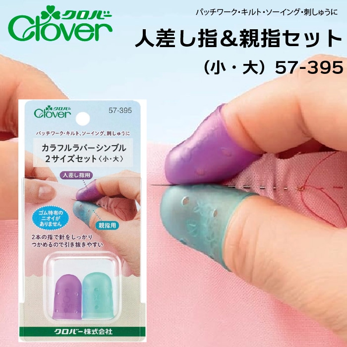 【メール便対象】クロバー カラフルラバーシンブル 人差し指&親指セット